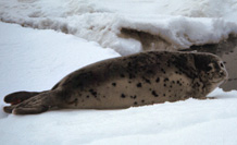 | Distribution and Numbers Also known as the Larga seal, the spotted seal inhabits the ice and waters of the north Pacific Ocean and adjacent seas, being found along the continental shelf of the Beaufort, Chukchi, Bering and Okhotsk Seas and south to the northern Huanghai Sea and western Sea of Japan. There is no up-to-date reliable census information on the total population of spotted seals. An estimate, now thought to be excessive, of 335,000 - 450,000 was made in the 1970s, of which 200,000 - 250,000 were reckoned to inhabit the Bering Sea. A Russian survey in 1986 and 1987 produced an estimate of 50,000 seals in the Okhotsk Sea. |